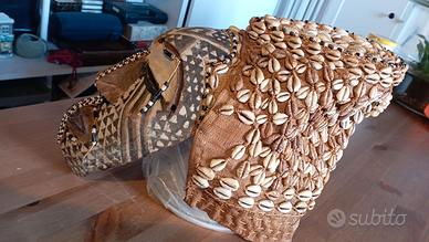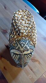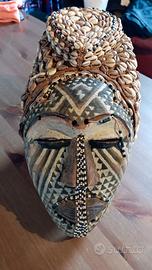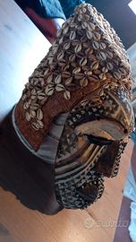 Maschera africana copricapo, in legno, perline, yuta e conchiglie courie portafortuna Ritiro presso Milano zona Solari