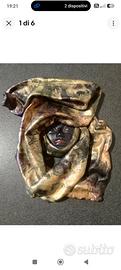 Maschera da parete che raffigura un volto circondato da un drappeggio.