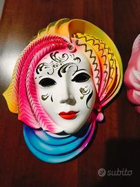 Maschere del carnevale si Venezia in ceramica / terracotta prese a Murano.