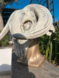 Maschera scenica in lattice, raffigurante un teschio di toro bianco dalle dimensioni importanti, dal design unico e realistico. Ideale per costumi, cosplay ed eventi a tema, questa maschera si distingue per l’impatto visivo e l’effetto inquietante, perfetto per ambientazioni dark, fantasy o horror.