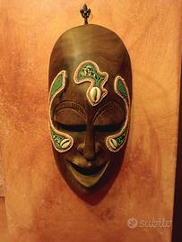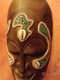 vendo maschera tribale Africana (Dan) intagliata e decorata a mano con perline e conchiglie di Ciprea
