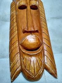 Maschera etnica in legno massiccio intarsiata e intagliata, fatta a mano e dipinta a mano.