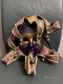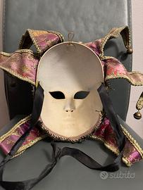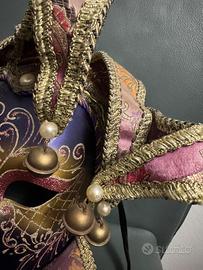 Maschera veneziana originale in stile Jolly/Giullare, acquistata a Venezia circa 10–15 anni fa. Un oggetto scenografico ed elegante, ideale sia come decorazione per la casa sia per feste in maschera o Carnevale.