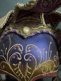 Realizzata con colori intensi viola e oro, arricchita da finiture in broccato e campanellini decorativi alle estremità, tipici dello stile veneziano tradizionale. Perfetta per collezionisti o per chi desidera un pezzo autentico e raffinato.