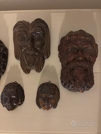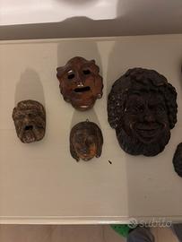 Vendo splendida collezione di 8 maschere antiche in legno, acquistate originariamente presso un prestigioso negozio di antichità a Taormina.