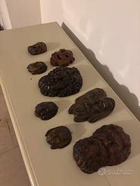 Vendo splendida collezione di 8 maschere antiche in legno, acquistate originariamente presso un prestigioso negozio di antichità a Taormina. Ogni pezzo è scolpito a mano con grande maestria, raffigurando volti espressivi e figure mitologiche (come satiri e volti classici). La varietà di dimensioni e soggetti rende il set perfetto per creare una parete d'accento unica o per collezionismo. Stato di conservazione eccellente: • Sicurezza: Effettuato trattamento antitarlo/pesticida professionale. • Pronte all'uso: Molte presentano già il gancio posteriore per essere appese immediatamente Il prezzo di acquisto originale è stato di circa € 400 ma svendo oggi a un prezzo ridicolo.