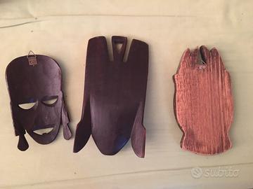 Vendo tre maschere in legno ideali da appendere al muro. Artigianali. Misure: circa cm 10x20 - 10x15. Vendo tutte insieme