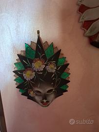 2 bellissime maschere veneziane in ceramica d'arredamento