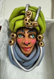 Bellissimo mascherone saraceno, realizzato a mano da ceramista saccense con dettagli unici.