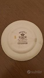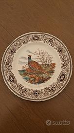 Coppia di piatti in porcellana inglese con decorazione uno raffigurante un pavone e uno raffigurante due quaglie dalla forma ovale e dal diametro di 26cm.
