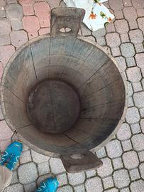 Mastella proveniente dalla civiltà contadina, usata per il vino. Restaurata come oggetto d arredo. perfetta come legnaia da tenere affianco al camino