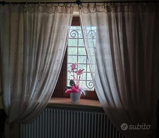 Mastro Raphael: Tende in lino ecrù con laccetti e disegno giglio in perfette condizioni.
