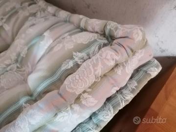 N. 5 materassi in lana fatti a mano misura 80x190 h. 11 cm. rivestiti in tessuto di cotone di cui n.1 con fantasia verde e n. 4 fantasia azzurra. Il prezzo è a materasso.