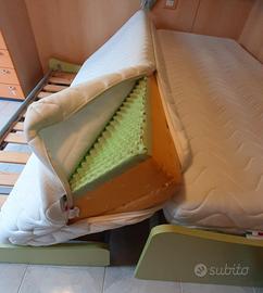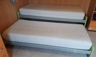 N.2 materassi in lattice anallergico 190x80, 20cm di altezza + relativa struttura a scomparsa con doghe in legno incorporate. Altezza massima della struttura 62cm. Larghezza 90cm. Lunghezza 205cm