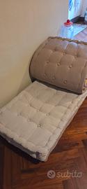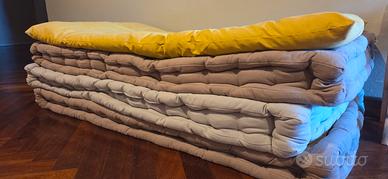 vendo quattro materassini misure 60×120 (3 altezza 10 cm, 1 da 6cm) lettino bimbo. Io li ho presi per comporre un divanetto che, all'occorrenza di trasformasse in letto d'appoggio sistemando per terra i tre materassini da 10cm. Comodissimo e componibile come divanetto o da utilizzare per arredare giardino e terrazzo.