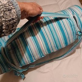 bellissimo materassino con cuscino in gomma piuma rivestito in puro cotone 57x160 utilizzabile sia in spiaggia che in viaggio.Portabile sia a mano che a spalla.Nuovo!