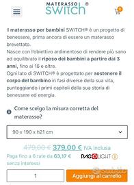 Vendo materasso 90x190 nuovo, tolto dalla confezione originale e mai utilizzato. H 21 cm Prezzo di mercato €379 - dispositivo medico