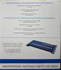 Vendo materasso antidecubito nuovo, nella scatola originale, senza compressore. Misure 280x90x6.5 Peso massimo 130kg SS a carico del destinatario