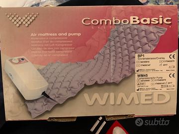 SovraMaterasso ad aria + pompa, presidio medico con marchio "CE", specifico antidecubito, usato solo 1 mese. La scatola contiene il materasso e il compressore elettrico che infonde aria e tiene in pressione il materasso durante il giorno, la pressione è regolabile. Per letto singolo. Marca WIMED #Airmatress and pump