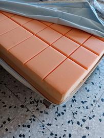 Materasso in poliuretano espanso a cellule aperte, tre strati ad alta resilienza di densità 30. Lavorazione della superficie su entrambi i lati a parallelepipedi per assicurare un’efficace circolazione d’aria tra materasso e utente, con diversa sezione per agevolare l'uso degli snodi sui letti articolati. Dotato di fodera impermeabile. Dimensioni: 195 x 85 x 14.