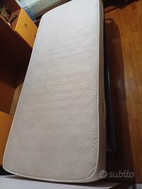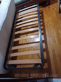 Vendo letto singolo completo, ideale per camera dei ragazzi, ospiti o per una casa vacanze. Il set è composto da: • Rete a doghe in legno: struttura robusta in metallo con doghe in multistrato di betulla/faggio per un ottimo supporto. • Materasso: dimensioni 200x82 cm, confortevole e con rivestimento trapuntato. • Stato: Usato ma in buone condizioni generali e perfettamente funzionale. Dimensioni: 200 cm (lunghezza) × 82 cm (larghezza)TESTIERA IN REGALO PER TE