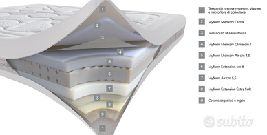 Myform Memory Clima: "questo materiale mantiene stabile la temperatura corporea a contatto con il materasso. Garantisce la costante termoregolazione, trattenendo e rilasciandolo il calore quando necessario. "
