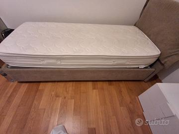 materasso 1,90 per circa 90 altezza 25 semi nuovo made in Italy rifinito a mano marca bedding lato invernale e estivo.Struttura letto a cassonetto con doghe.rivestito in tessuto beige.