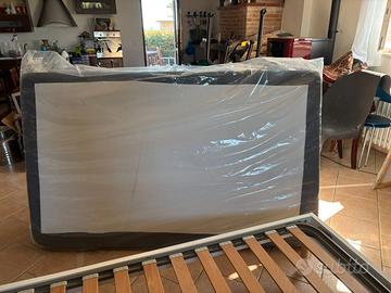 Incluso nel prezzo la struttura (comprensiva dei piedi) + rete + meterasso da una piazza e mezzo (120x200 cm) come nuovo, utilizzato per qualche mese per poi essere riposto nella sua plastica e sigillato. Nessun segno di usura, nessuna macchia e nessuna differenza rispetto al nuovo. Vendo per passaggio a letto a due piazze.