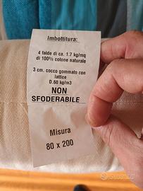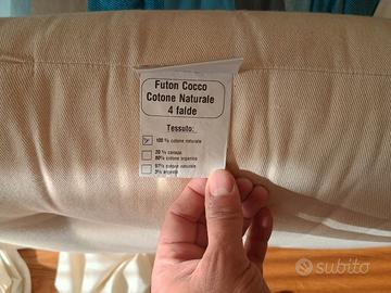Cedo in abbinamento al letto presente nell' altro annuncio materasso/futon 80X200 cm. Futon realizzato da cotone con aggiunta di cocco. Formato da 2 str. di cotone, 1 str. di cocco, 2 str. di cotone. Altezza 14 cm. Rivestimento in cotone 100% colore naturale. Completo di coprimaterasso con cerniera.