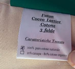 Futon Cotone – Lana – Fibra di Cocco – Lattice, rivestimento 100% cotone naturale. Materiali straordinari. Materasso usato pochissime volte, quindi perfetto e pulitissimo. A seconda della città, posso valutare di consegnarlo personalmente.