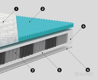 Imbottitura in Memory Visco Foam h. 2 cm, favorisce benessere posturale alle articolazioni durante il riposo riducendo i punti di pressione.