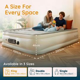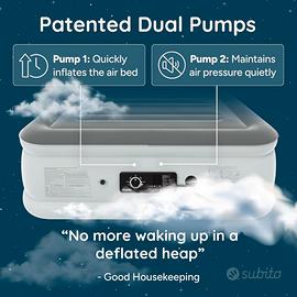 Materasso gonfiabile Huddle NEVER DEFLATE™ di lusso, vincitore del premio Good Housekeeping 2025 come miglior materasso gonfiabile, con tecnologia SlumberGuard™ a doppia pompa, rigidità regolabile, pompa integrata e luce notturna USB.Dimensioni del prodotto2 metri di lunghezza x 1,5 metri di larghezza x 0,49 metri di altezza MaterialePVC Usi specifici del prodottoAmpio letto per ospiti, letto temporaneo di lusso Componenti inclusiBorsa per il trasporto, doppia pompa, materasso ad aria king-size