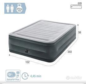 Materasso matrimoniale gonfiabile, marca Intex per laassima qualità, si gonfia e si sgonfia da solo in 5 Min grazie alla sua pompa elettrica integrata e si conserva in poco spazio nella sua sacca. Utilissimo al bisogno di un letto aggiuntivo di emergenza. Ottimo stato!