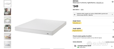 - Lo smontaggio (se necessario) e il ritiro del materasso sono a carico dell'acquirente. Sono disponibile per supportare con informazioni, ma l'acquirente dovrà provvedere personalmente al trasporto.