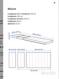 Materasso in schiuma allungabile 200 x 80