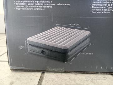Materasso gonfiabile matrimoniale Intex DuraBeam con pompa elettrica incorporata mis. 152x203x51 cm mod. 64164ND. Grazie al particolare design è possibile utilizzare lenzuola con angoli elasticizzati. Il materasso è nuovo, mai usato, imballato nella sua confezione originale.