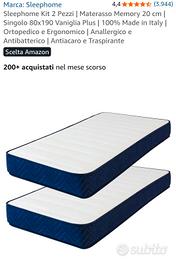 Vendo due Materassi singoli,50 € cadauno. Memory 20 cm | Singolo 80x190 Vaniglia Plus | 100% Made in Italy | Ortopedico e Ergonomico | Anallergico e Antibatterico | Antiacaro e Traspirante.