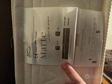 Vendo materasso Marion MATRIMONIALE modello Marte, in buone condizioni, usato pochissimo e sempre con coprimaterasso. Progettato per offrire un riposo ergonomico e confortevole ideale anche per chi soffre di mal di schiena o cerca un appoggio stabile ma accogliente.