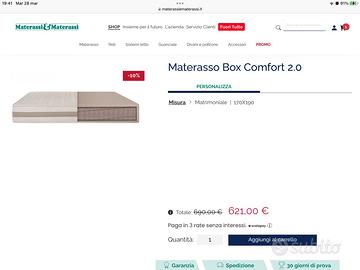 Vendo materasso matrimoniale di Materassi & Materassi, modello Box Confort 2.0 in perfetto stato, usato pochissimo, da UNA SOLA persona e SOLO per errata misura.