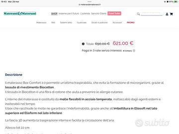 Offro ad un prezzo irrisorio MENO DI 1/3 del pagato, controllate pure sul Sito e Negozi Materassi & Materassi .
