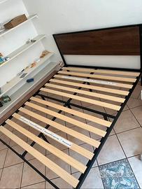 Struttura con doghe in legno e testiera in legno annessa.