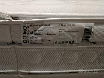 Materasso matrimoniale Doimo, modello Principe, anallergico e anti-acaro. Struttura a molle in acciaio temperato e Memory. 160x195x24 cm. Come nuovo, condizioni perfette.