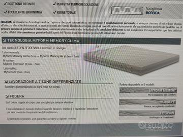 Vendo per inutilizzo, utilizzato poco e ben tenuto, materasso matrimoniale 160x200 Dorelan modello Eden sfoderabile myform clima, vedi caratteristiche nella foto allegata.