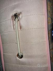 Materasso matrimoniale morbido, usato ma ancora in ottime condizioni. Colore rosa, attualmente arrotolato e conservato nel nylon della confezione originale.