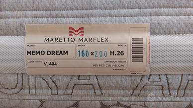 Vendo materasso matrimoniale Maretto Marflex modello Memo Dream, misure 160x200 h.26. Imbottitura sfoderabile in fibra anallergica fantasia "artenatura bordato" cod. v.404 Composto da 800 molle insacchettate indipendenti, con sette zone di portanza differenziata, abbinato ad uno strato di 4 cm dimemory. Il materasso è stato usato circa un anno ed è in perfette condizioni, vendo per rinnovo camera da letto.