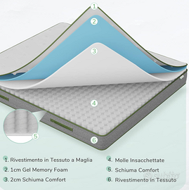 Struttura ibrida: combinazione di molle insacchettate e strati di memory foam e schiuma ad alta densità per una migliore ventilazione e distribuzione del peso