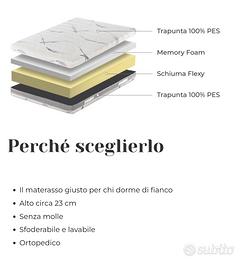 Materasso in memory h.23 cm usato poco, nessuna imperfezione Descrizione completa in foto
