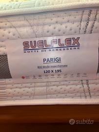 Materasso ortopedico Suelflex da una piazza e mezza (misure 120x195 cm), alto 28 cm, 800 molle insacchettate indipendenti.