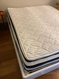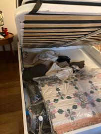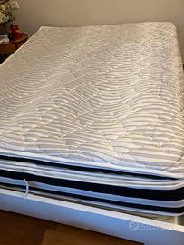 materasso 160x190 h 32 superotopedico sfoderabile bianco con letto contenitore con doghe e piedini legno bianco , senza testata. comprati nel 2024, vendo per cambio casa.