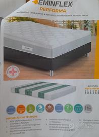 Vendo materasso Performa Eminflex, quasi nuovo. 160x200. Rigidità media 5/7. 1600 molle indipendenti in acciaio al carbonio fosfato. Strato da 1,5cm in Memory Fresh, box perimetrale antiaffossamento in Tecnosoft HD, imbottitura anallergica in Poliestere, rivestimento esterno in tessuto anallergico sfoderabile e lavabile a 30°C, maniglie in tessuto, altezza 25 cm ca. Prezzo trattabile.